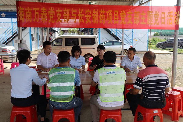 為提升公司基層黨建工作水平,激勵引導黨員立足崗位做表率,不斷推進自貿港建設作出新的貢獻,海南萬泰公司黨支部于2020年9月9日上午組織黨員深入在建項目長安制藥美安科技新城新廠建設工地,與長安制藥項目黨支部聯合開展了一次接地氣、入人心的專題黨日學習活動,主要是以學習海南自貿港建設總體方案為重點,大家結合各自實際交流和分享了學習心得體會,一致感到自貿港建設給企業發展帶來了紅利,為老百姓帶來了實惠,作為企業的一名共產黨員應該即當好自貿港的建設者,又要通過模范帶頭作用,當好自貿港建設的推動者。萬泰公司黨支部副書記孟晨、長安制藥項目黨支部書記張蕾及項目黨員、入黨積極分子參加了活動。