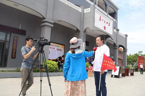 在椰子寨戰役地,我們遇到了三沙衛視的記者,對于我們本次的紅色之旅,電視臺記者表示非常感興趣,認為我們本次以紅色主題開展的周年慶活動非常的有意義,并現場采訪了我司工會主席、常務副總顏利。