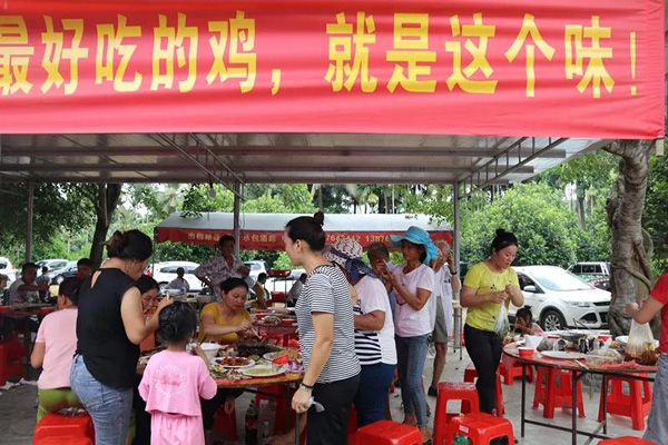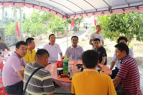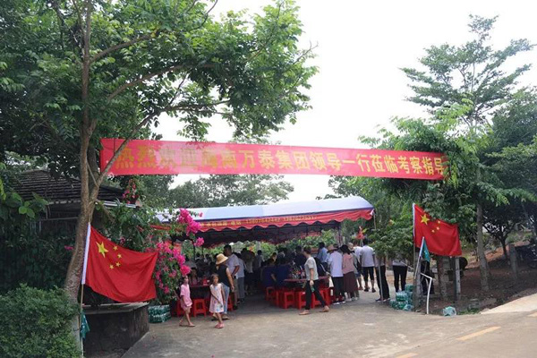 萬泰員工與當地村民聯餐,氣氛融洽歡樂。就餐完畢后,在萬泉河文化研究會莫會長的帶領下,前往內園村的“紅色娘子軍成立會址”參觀學習。