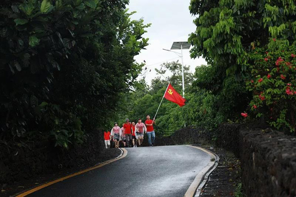 上午7點,大家于施茶村村委會文化室前聚集,在丁飛局長發表動員講話后,全員冒雨出發。