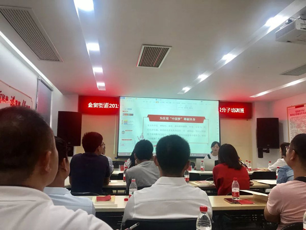 為推動主題教育高質(zhì)量開展,做好發(fā)展黨員工作,保證新發(fā)展的黨員質(zhì)量,保持黨的先進(jìn)性和純潔性,提高黨組織的戰(zhàn)斗力。根據(jù)《中國共產(chǎn)黨發(fā)展黨員工作細(xì)則》有關(guān)規(guī)定,結(jié)合“不忘初心,牢記使命”主題教育部署和要求,2019年11月13日上午,金貿(mào)街道工委在國貿(mào)大院黨群活動中心暨新時代黨員教育實(shí)踐基地舉辦2019年“不忘初心 牢記使命”主題教育暨入黨積極分子課程培訓(xùn)班。本期學(xué)員涵蓋轄區(qū)機(jī)關(guān)、社區(qū)、兩新組織、國企黨組織等入黨積極分子23人。