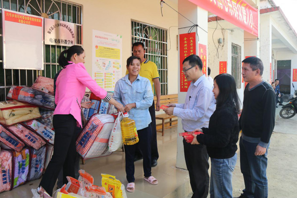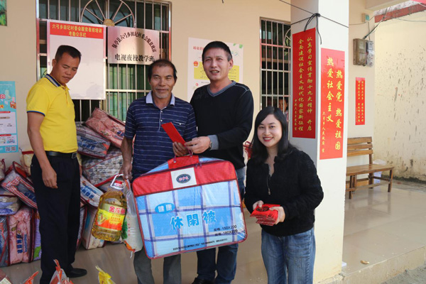 (現(xiàn)場(chǎng)發(fā)放愛(ài)心扶貧物資)