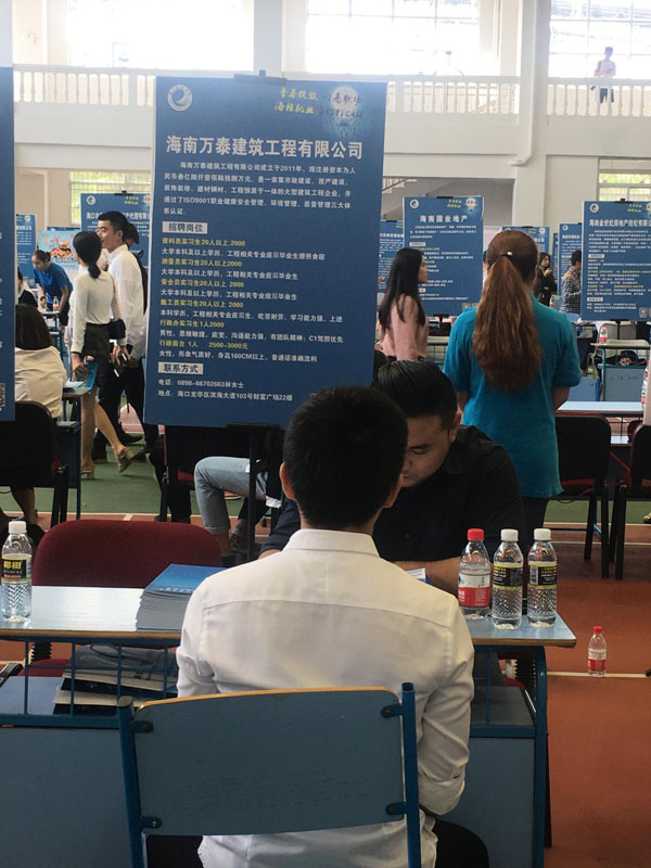 為積極響應(yīng)相關(guān)就業(yè)政策,減輕社會就業(yè)壓力,履行企業(yè)社會責(zé)任,為眾多應(yīng)屆畢業(yè)生提供前景廣闊的就業(yè)崗位,同時,落實推進公司人才建設(shè)計劃,配合公司發(fā)展戰(zhàn)略目標(biāo),進一步強化人才隊伍建設(shè),搭建起企業(yè)招賢引才的開放平臺,11月3日下午,海南萬泰指派行政人事部相關(guān)人員前往桂林洋高校區(qū),參加在海口經(jīng)濟學(xué)院舉辦的大型校園招聘會。