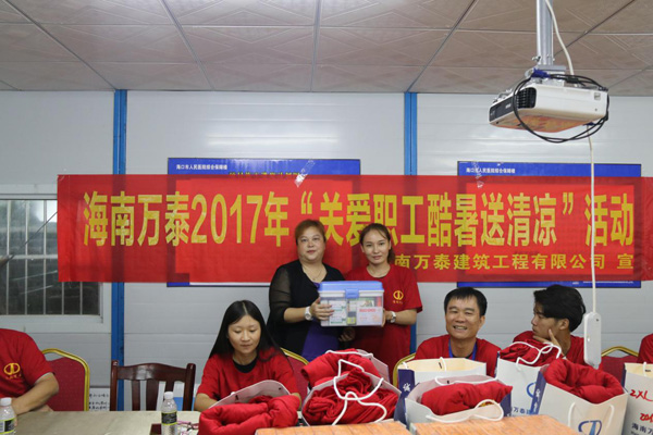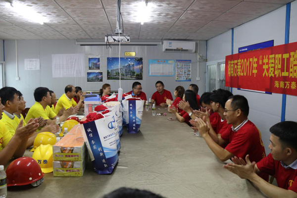 海南萬泰在追求企業(yè)發(fā)展的同時,始終把民工利益擺在重要位置,關愛民工工作生活。長期以來,海南萬泰都對一線工人的生產(chǎn)生活格外重視,通過節(jié)日慰問、送清涼等一系列活動,深切表達公司領導及同事對長期駐扎一線的項目工人的關懷之情。