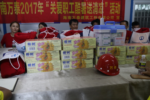 本次送清涼活動,海南萬泰公司共送出14箱菊花茶,400件T恤以及部分應急醫(yī)藥品。項目部林總代表項目工人對公司的關懷及慰問表示由衷的感謝。