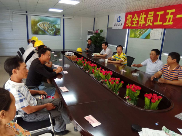 受五指山清能置業有限公司董事長羅曉東,海南萬泰建筑工程有限公司總經理張小龍的委托,5月1日上午,五指山清能置業有限公司總工程師向俊宜、海南萬泰清能麗景灣項目經理邱福漢以及項目部管理人員走訪了清能麗景灣項目的各班組,轉達了羅曉東董事長、張小龍總經理對項目部一線員工的親切問候,并給奮戰在一線的同志們送上慰問金及餐補,對堅守在施工一線的員工們表示衷心的感謝。在座談會上,慰問組一行詳細了解了大家的工作和生活情況,要求他們注意抓好工期質量安全工作,注重和諧團隊建設;鼓勵大家堅定信心,趕搶工期、注重質量安全工作,為萬泰建筑做出新的貢獻。