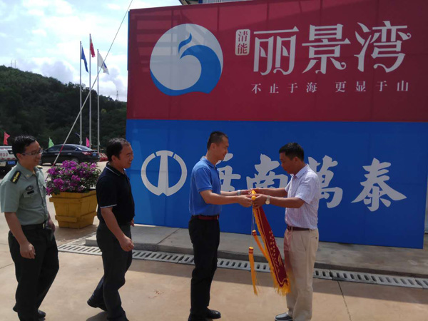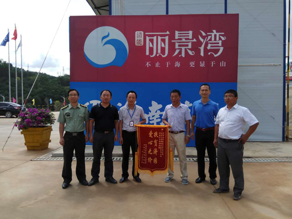五指山市毛道鄉武裝部部長胡國萬為海南萬泰清能麗景灣項目部送錦旗。