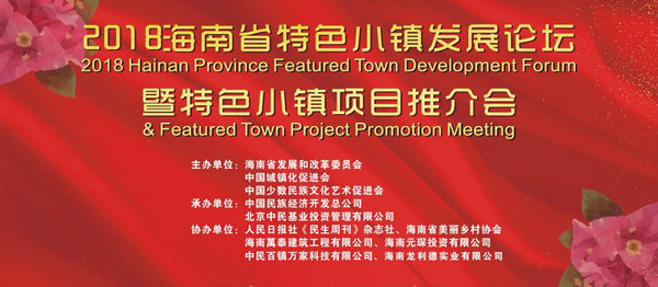 2018年12月2日,為貫徹黨中央、國務(wù)院關(guān)于推進(jìn)小城鎮(zhèn)建設(shè)的精神和習(xí)近平總書記在慶祝海南建省辦經(jīng)濟(jì)特區(qū)30周年大會上關(guān)于“發(fā)展鄉(xiāng)村旅游,打造一批體現(xiàn)熱帶風(fēng)情的精品小鎮(zhèn)”的重要講話精神,促進(jìn)特色小鎮(zhèn)和特色小城鎮(zhèn)的建設(shè)發(fā)展和少數(shù)民族文化保護(hù),落實國家發(fā)展改革委先后印發(fā)的《關(guān)于加快美麗特色小(城)鎮(zhèn)建設(shè)的指導(dǎo)意見》《關(guān)于規(guī)范推進(jìn)特色小鎮(zhèn)和特色小城鎮(zhèn)建設(shè)的若干意見》《關(guān)于建立特色小鎮(zhèn)和特色小城鎮(zhèn)高質(zhì)量發(fā)展機(jī)制的通知》的要求,進(jìn)一步規(guī)范特色小鎮(zhèn)建設(shè),推動特色小鎮(zhèn)高質(zhì)量發(fā)展,由海南省發(fā)展與改革發(fā)展委員會、中國城鎮(zhèn)化促進(jìn)會、中國少數(shù)民族文化藝術(shù)促進(jìn)會發(fā)起主辦,由中國民族經(jīng)濟(jì)開發(fā)總公司、北京中民基業(yè)投資管理有限公司承辦的2018海南省特色小鎮(zhèn)發(fā)展論壇暨特色小鎮(zhèn)項目推介會,在位于海南海口的中國(海南)改革發(fā)展研究院會議廳成功舉行。