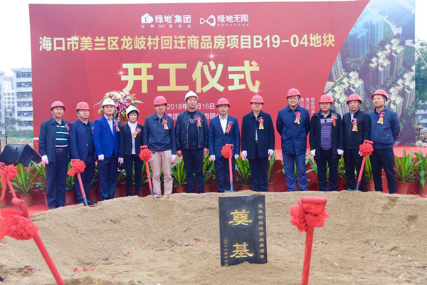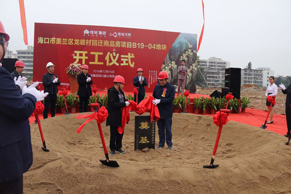 2018年12月16日上午10點18分,龍岐村項目B19-04地塊開工儀式在大英山東四路和大英山東二街交匯處隆重舉行。海口市征收局副局長王輝,美蘭區人大副主任、龍岐指揮部指揮長劉慧義,龍岐指揮部副指揮長譚顯知,綠地海南事業部工程總監趙四清、合約部總監陳梅、城市更新部總監、龍岐項目總經理魏和平、貴州建工集團有限公司副總經理李小峰、龍岐項目部負責人張小龍、海南建工集團原董事長曹書明及美蘭區房屋征收局、項目指揮部、建設單位工作人員代表參加開工儀式。