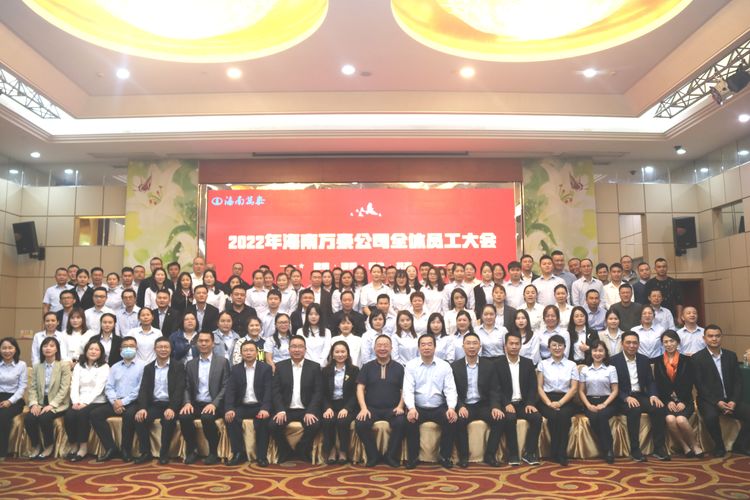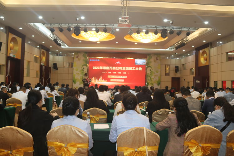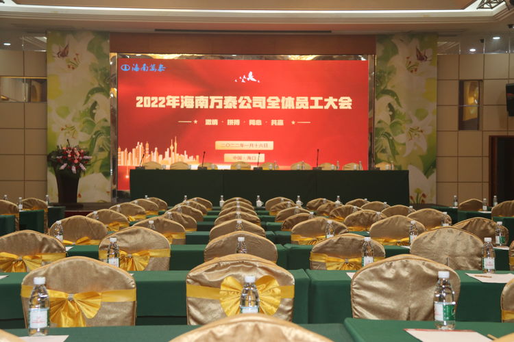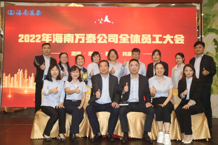 激情奮進新時代 同心共筑萬泰夢,1月16日,2022年萬泰集團全體員工大會在海口寶發(fā)勝意酒店成功召開,會議全面總結了2021年萬泰生產經營情況,研判形勢,研究部署2022年重點工作,推動萬泰集團工作再上新臺階。總經理張小龍、常務副總經理顏利及全體員工近150人參加了會議。本次會議嚴格落實海南省疫情防控政策要求,采取“現場+視頻連線”的形式召開,會議由總經理助理曹珊珊主持。