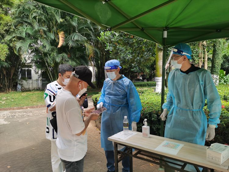 疫情當前,刻不容緩。3月25日,受國內疫情防控形勢影響,為響應政府的號召,萬泰志愿者們在顏利常務副總的帶領下,前往海口萬利隆酒店對面的三角街心公園協助金貿街道辦、金貿街道商會開展社區防疫核酸檢測等項工作。“ 我是一塊磚,哪里需要往哪搬”測體溫、掃健康碼、錄個人信息、發檢測試劑……萬泰人“穿梭”在核酸檢測現場的各個崗位上,無懼汗水的浸濕、烈日的熾灼、疫情的危險,堅守崗位履職盡責。