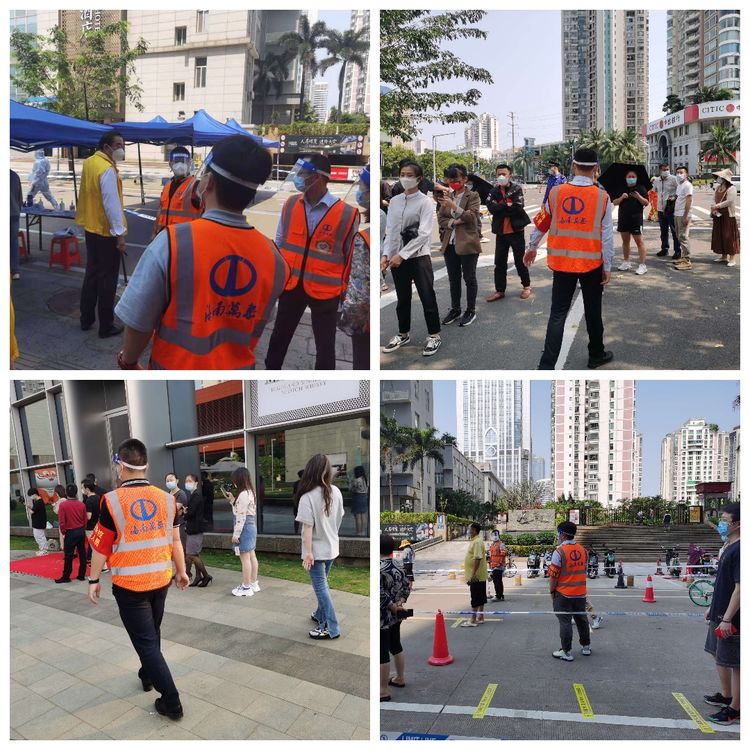 不忘初心,肩負擔當。4月6日,龍華區政府進行了主城區全員核酸檢測工作,在公司常務副總顏利的帶領下,公司員工分批次,有秩序, 有組織地奔赴金貿街道轄區內的置地花園、電力村、海口灣、百方廣場等區域核酸檢測點,協助開展核酸檢測工作,做好現場秩序維護。“請大家間隔1米排好隊”“請戴好口罩,提前打開健康碼”……從中午到晚上9時,海南萬泰公司的員工堅守崗位盡職盡責,維護好核酸檢測人員隊伍秩序,耐心解答群眾的疑問,安撫焦急等待的心情,幫助群眾操作健康碼,引導老人、孕婦優先檢測,充分彰顯了無私奉獻的志愿精神。
