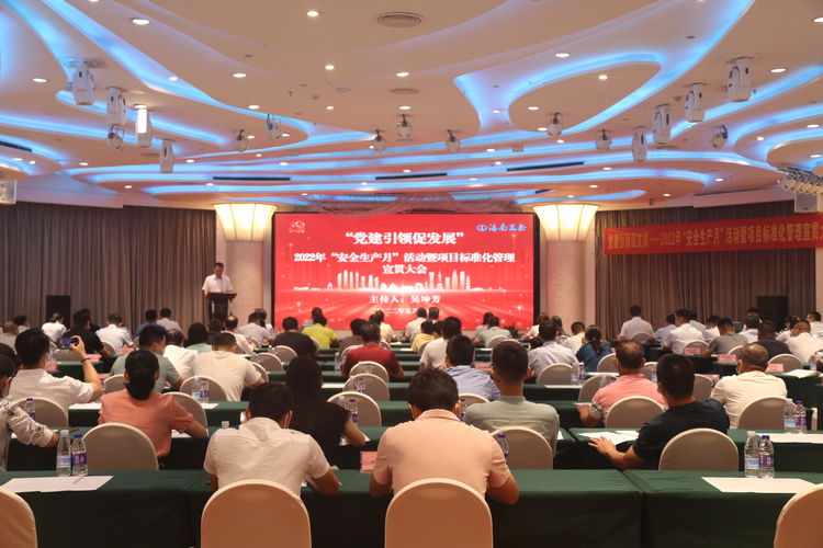 人間最美五月天,朝氣蓬勃沖云霄。為做好黨建引領(lǐng),促進(jìn)企業(yè)發(fā)展,在第21個(gè)全國(guó)“安全生產(chǎn)月”來(lái)臨之際,圍繞“遵守安全生產(chǎn)法,當(dāng)好第一責(zé)任人”及“規(guī)范項(xiàng)目標(biāo)準(zhǔn)化管理”的活動(dòng)主題,5月15日,海南萬(wàn)泰集團(tuán)在海口寶華酒店成功召開(kāi)了黨建引領(lǐng)促發(fā)展—2022年“安全生產(chǎn)月”暨項(xiàng)目標(biāo)準(zhǔn)化管理宣貫大會(huì)。集團(tuán)常務(wù)副總經(jīng)理顏利、副總經(jīng)理張宇等公司主要領(lǐng)導(dǎo)、部門(mén)負(fù)責(zé)人及各在建項(xiàng)目部項(xiàng)目經(jīng)理、資料員、安全員近130人參加了本次會(huì)議,海南省建設(shè)工程質(zhì)量安全檢測(cè)協(xié)會(huì)秘書(shū)長(zhǎng)紀(jì)扣寶應(yīng)邀出席會(huì)議,本次會(huì)議由副總經(jīng)理吳坤芳主持。