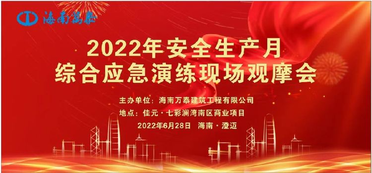 為貫徹落實習總書記關于安全生產重要論述,以黨建引領促進安全生產,全面提升項目質量管理水平,增強安全責任意識,按照上級相關主管部門對開展“安全生產月”活動的通知要求,結合第21個全國“安全生產月”,2022年6月28日,海南萬泰建筑工程有限公司在七彩瀾灣南區商業項目部成功舉辦了2022年“安全生產月”綜合應急演練觀摩會。省住建廳安全行業專家劉輝輝,澄邁縣住房和城鄉建設局莫丁,澄邁縣應急管理局冼厚霖,澄邁縣質監站王廣彬,中豪威爾房地產有限公司甲方代表孫志明,海南藍城君潤科技有限公司副總經理陳自衡、工程部經理張凡春,杭州巨烽建設工程項目管理有限公司總監朱冬風,公司常務副總經理顏利、副總經理吳坤芳等相關人員參加本次觀摩會。澄邁縣老城消防救援特勤站、同和醫院友情協助開展本次綜合應急演練。
