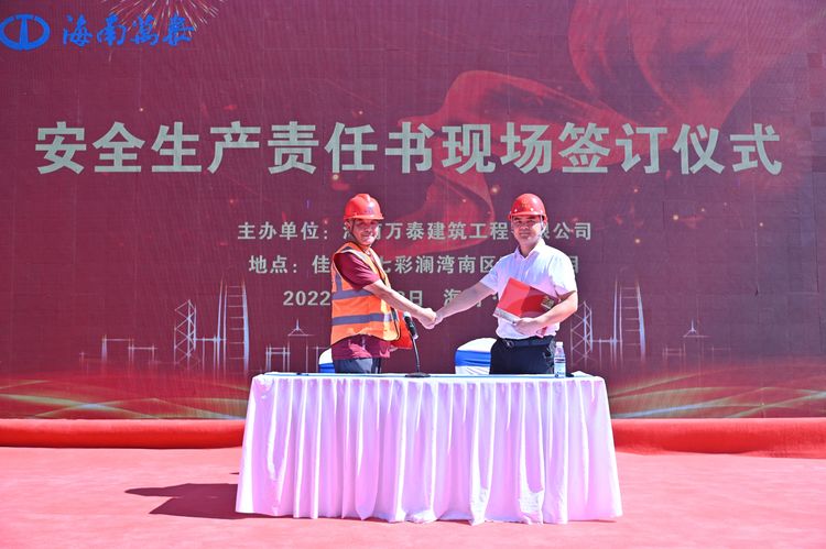觀摩會上,佳元·七彩瀾灣南區項目經理郭美龍當眾宣讀了安全生產責任書,并與公司工程部部長侯領簽訂安全生產承諾書。侯領部長在發言中表示,舉辦此次觀摩會,將有利于我們以更堅定的決心、更有力的舉措、更廣泛的動員,切實把安全生產工作抓嚴抓實,希望大家通過在觀摩會上的學習交流,都能夠不斷地堅定信念、強化本領,共同為海南自貿港建設添磚添瓦,貢獻出一份力量。