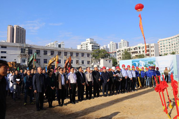 在開工奠基儀式上,張小龍總經理為我司承建該項目作出表態發言,張總表示:此項目是海南自由貿易實驗區重點建設項目(第六批)集中開工項目,也是社會各界所關注的民生工程,我司承建該項目倍感激動和榮幸。我們將組建最強有力的管理團隊,秉承“誠信創新永恒,精品人品同在”的施工理念,嚴格按照施工規范,工藝流程,質量體系標準組織施工,精心制定嚴密的施工進度計劃,并本著“精干、高效、優化、強化”的原則配齊配強各類管理人員和技術人員,做到科學施工,確保工程質量安全文明施工達到優良標準。并且,在本項目開工伊始,我們就堅定不移的樹立了創優爭優的目標,嚴格以實際行動爭創優質工程,確保該項目獲省優稱號,拿下各類評優獎項,為該項目的工程建設交上滿載榮譽的滿分答卷,圓滿完成領導和建設單位交給我們的光榮任務。