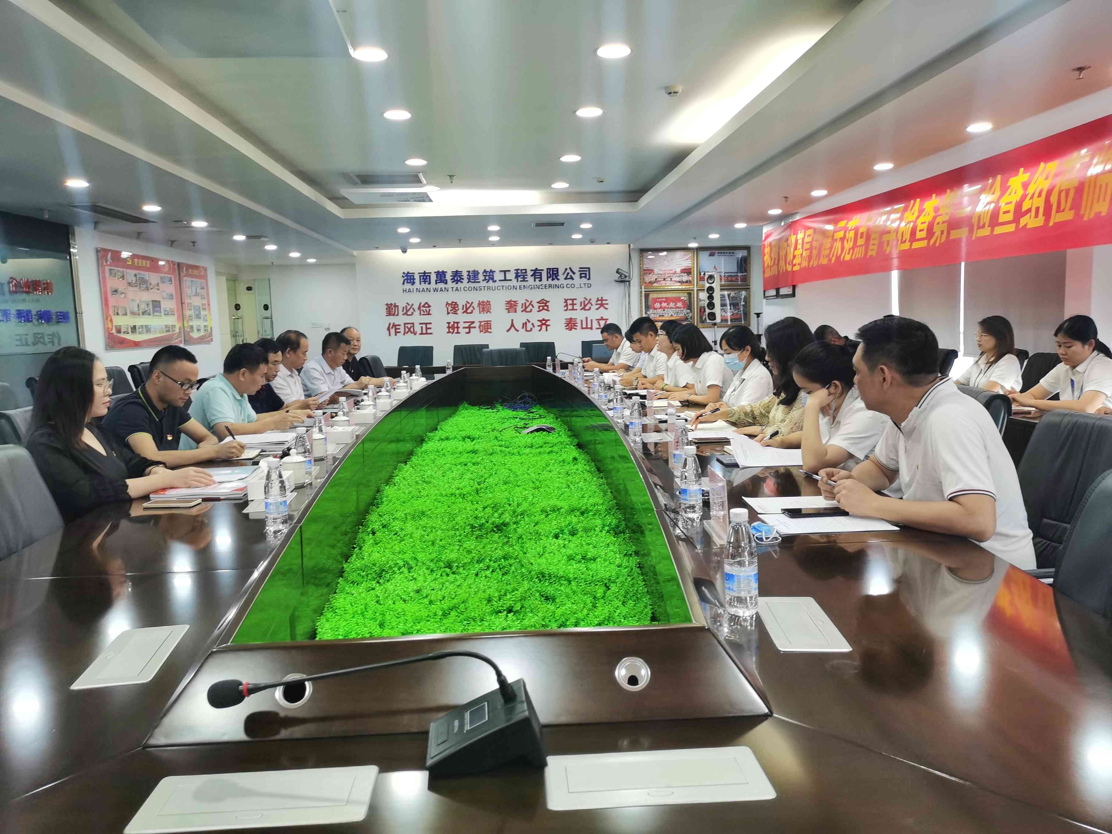 為進一步推動基層黨組織工作的開展,鞏固基層黨建示范點創建活動成果,確保年度創建目標如期完成,2022年10月9日,省委兩新組織工委基層黨建示范點督導檢查第三檢查組組長韓疇、省住建行業黨委專職副書記李述朝等一行蒞臨海南萬泰,對公司黨建工作進行檢查指導。海南萬泰黨支部黨員、發展對象和入黨積極分子一同參加了本次會議。