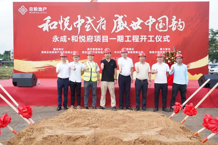 隨后,建設單位海南合悅房地產開發有限公司楊總正式宣布永成?和悅府項目(一期)開工。伴隨著隆隆的禮炮聲,楊總、顏總等相關領導為項目開工培土奠基,預祝項目開工大吉。