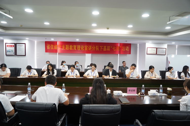 為深入學習黨的二十大精神,開展好學習貫徹習近平新時代中國特色社會主義思想主題教育,引導廣大黨員群眾深刻領悟“兩個確立”、增強“四個意識”、堅定“四個自信”、做到“兩個維護”,推動黨的二十大精神在基層走深走實,2023年5月25日,海南省住房和城鄉建設廳人事處二級調研員、行業黨委專職副書記李述朝,黨建指導員陳小娜走進海南萬泰公司開展學習貫徹習近平新時代中國特色社會主義思想主題教育理論宣講“七進”活動。萬泰公司黨員及員工近50人參加了本次宣講活動。