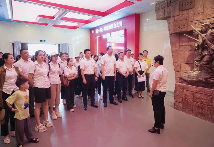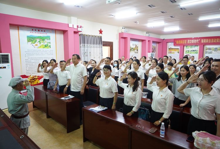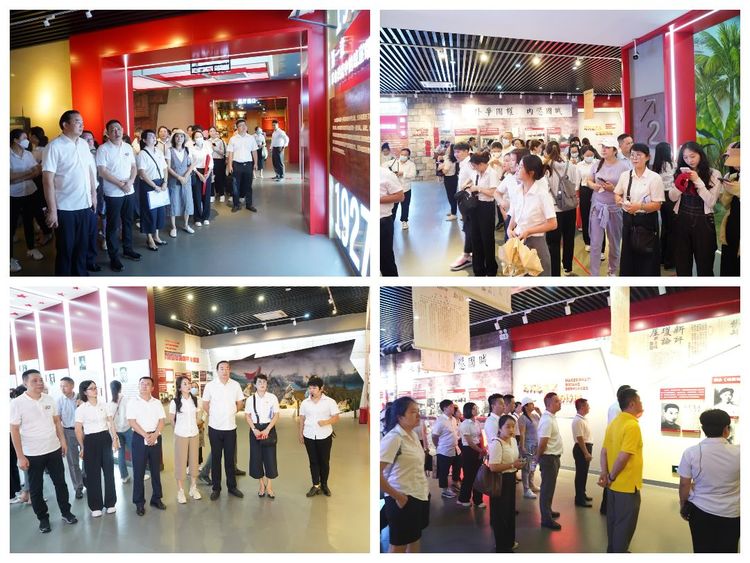 活動第一站來到了定安縣母瑞山革命根據地紀念園。大家首先參觀了革命歷史博物館,一張張革命的照片展現了母瑞山紅軍革命奮斗史,一件件無聲的遺物令人夢回曾經革命時代。通過認真聆聽博物館講解員的娓娓道來,生動形象的講述,大家深入了解了母瑞山革命根據地的發展歷程,這個地方曾在瓊崖人民堅持武裝斗爭二十三年紅旗不倒光輝歷程中起到了舉足輕重的作用,凝結著“崇高理想、堅定信念,勇于獻身,相信群眾、依靠群眾,自力更生、艱苦奮斗”的母瑞山精神,對那段艱苦卓絕的歲月有了新的認識和領悟。隨后,黨員們懷著對革命烈士崇敬的心情,在王文明、馮白駒的銅像前為革命先輩默哀一分鐘和三鞠躬,并重溫了入黨誓詞。