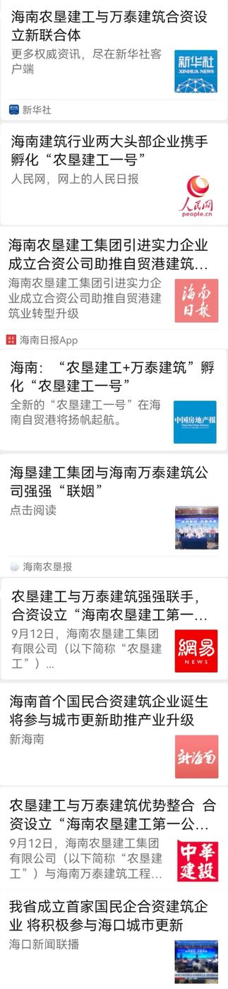 海南省農墾建工集團有限公司是一家“國資控股、民資參股”,集工程項目施工、房地產開發及工程建設投資一體化的大型建筑產業集團,是海南省“百強”企業,將充分發揮其在海南市場的資源優勢與發展前景;而海南萬泰建筑工程有限公司是一家大型民營建筑工程企業,去年年底曾被中華人民共和國人力資源和社會保障部、中華人民共和國住房和城鄉建設部評為“全國住房和城鄉建設系統先進集體”,也將進一步憑借其大型項目建設管理、團隊施工技術管理、項目創優創獎等多方面優勢,雙方共同在交流合作的道路上并肩前行,共創未來,高揚互利共贏之帆,把穩團結協作之航,在未來發展中取得更加輝煌的成就,為推動海南自由貿易港建設和發展做出更大的貢獻。