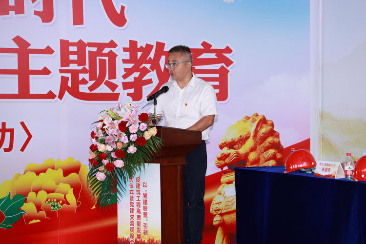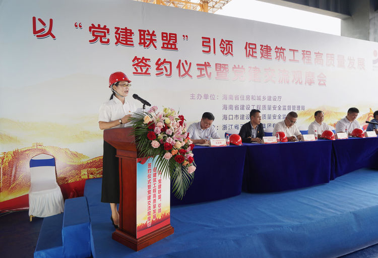 海口市建設(shè)工程質(zhì)量安全監(jiān)督站黨委書記、站長符志明在講話中表示將以江東片區(qū)“黨建聯(lián)盟”為紐帶,進(jìn)一步做好服務(wù)企業(yè)的各項(xiàng)工作,推動(dòng)工程項(xiàng)目質(zhì)量安全發(fā)展。