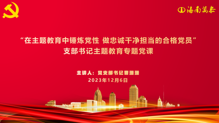 通過開展本次主題教育暨書記講黨課活動,提升了與會人員的黨性修養,也堅定了大家對開展好主題教育的信心與決心。下一步,海南萬泰黨支部將繼續引導廣大黨員群眾不斷增進對習近平新時代中國特色社會主義思想的政治認同、思想認同、理論認同、情感認同,筑牢信仰之基、補足精神之鈣、把穩思想之舵,努力為海南自貿港建設以及企業高質量發展作出新的貢獻。