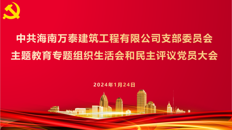 為落實好習近平總書記關于第二批主題教育的重要指示精神,學習貫徹習近平新時代中國特色社會主義思想,按照省住建行業黨委統一安排部署,1月24日下午,中共海南萬泰建筑工程有限公司支部委員會召開了主題教育專題組織生活會和民主評議黨員大會。支部黨員、發展對象、入黨積極分子參加本次會議,部分出差在外的黨員以視頻形式參加會議,會議由黨支部專職書記孟晨同志主持。