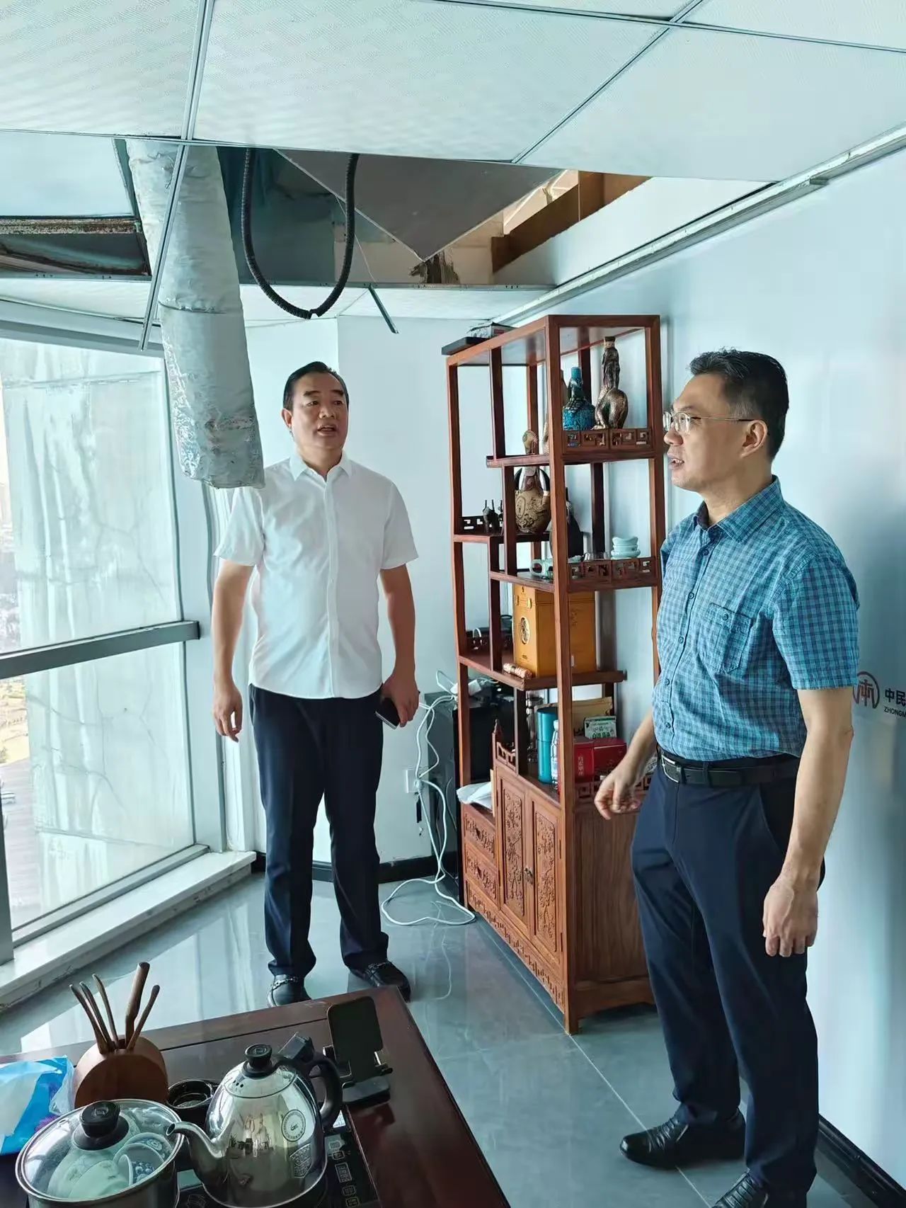 林青主委一行在公司總經(jīng)理顏利的帶領下查看了公司幾個因臺風“摩羯”而受損的辦公區(qū)域。在調研座談會上,公司總經(jīng)理顏利通過PPT圖片形式向林青主委一行介紹了本次受災受損情況,企業(yè)辦公區(qū)域積水、滲水嚴重,吊頂脫落、玻璃吹碎、設備損壞,多個項目部及工人生活區(qū)板房被吹塌、設備及電箱圍墻等受到嚴重破壞。顏利總表示,上述問題給企業(yè)造成了巨大的經(jīng)濟損失,嚴重影響了復工復產(chǎn)的進度,請各級政府部門能夠給予廣大企業(yè)更多的關懷和幫助,出臺政策及措施助力企業(yè)走出困境。
