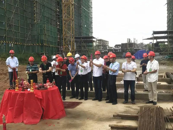 8:08時起,中青?和貴花園二期15#、16#樓正式封頂鏟混凝土。8:50時,各位領導燒香、拜土地公,從東北角開挖土方,由海南萬泰承建的中青?和貴花園三期12#樓完成奠基儀式,正式開工。