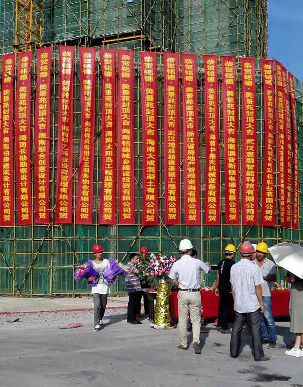 10月16日上午,由海南萬泰建筑工程有限公司承建的銘德?美景苑項目1、2、3號樓在業主、監理及項目部領導的見證下主體順利封頂,現場鞭炮齊鳴,氣氛熱烈。