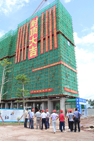 自今年二月份瓊海“信達?銀海御湖(一期)”項目開工以來,海南萬泰施工團隊不畏艱辛,克服海南高溫多雨的氣候特點,保質、保量,緊張施工,嚴格把控項目的各個施工細節,“信達?銀海御湖(一期)”項目9#樓率先完成主體封頂。