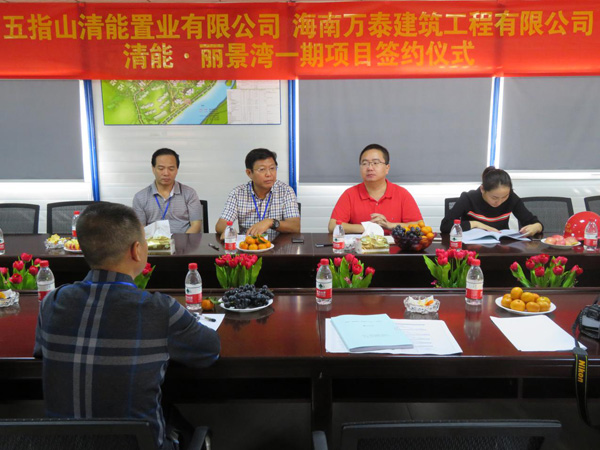 海南萬泰建筑工程有限公司總經(jīng)理張小龍、工程部部長張小云、五指山清能置業(yè)有限公司執(zhí)行董事羅曉東、項目總經(jīng)理尹宏、總工程師向俊宜、工程部副經(jīng)理彭愛明等共同參加了簽約儀式。