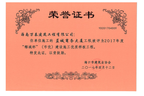 您當前所在位置: 首頁 > 走進萬泰 > 公司榮譽