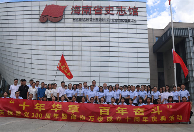 6月16日,海南萬泰慶祝建黨100周年暨公司成立十周年慶典活動圓滿舉辦。活動以“十年華章,百年奮斗”為主題,組織全體黨員、職工前往海南省史志館參觀學習及到中視影院進行紅色教育主題黨日活動。