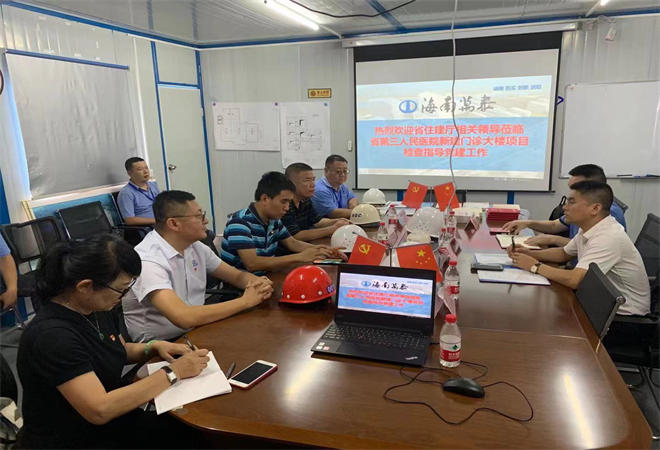 日前,海南省質安局楊處和郭科長一行到我司承建的海南省第三人民醫院新建門診大樓項目部調研檢查黨建聯系點建設及支部黨建工作開展情況,并現場對項目建設進行了調研指導。