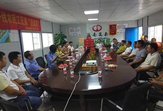 海南萬泰建筑工程有限公司五指山清能·麗景灣一期一標項目部在會議室組織農(nóng)民工工資集體發(fā)放暨海南萬泰建筑工程有限公司“送清涼”活動。此次共計發(fā)放農(nóng)民工工資150余萬元現(xiàn)金。共送去夏季防暑涼茶50箱、綠豆300斤、冰糖150斤等一批物質(zhì)。
