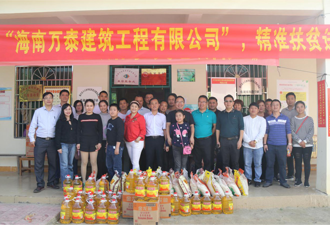 為積極響應(yīng)國家“精準(zhǔn)扶貧”政策,扛起企業(yè)責(zé)任,以實(shí)際行動回饋社會,同時(shí),大力弘揚(yáng)扶貧濟(jì)困的傳統(tǒng)美德,2017年12月9日,海南萬泰建筑工程有限公司總經(jīng)理張小龍帶領(lǐng)公司各級領(lǐng)導(dǎo)及員工深入保亭黎族苗族自治縣六弓鄉(xiāng)田圮村,開展扶貧活動。