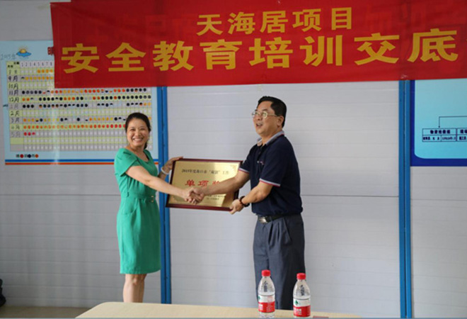 2016年4月5日下午,海口市“雙創(chuàng)”工作領導小組對2015年海口市“雙創(chuàng)”工作中涌現(xiàn)出的先進集體和個人進行表彰。由萬泰公司承建的“天海居”項目作為“雙創(chuàng)”示范工地,在“除四害、病媒防治”方面表現(xiàn)突出,榮獲2015年“雙創(chuàng)”工作典型示范單位單項獎。